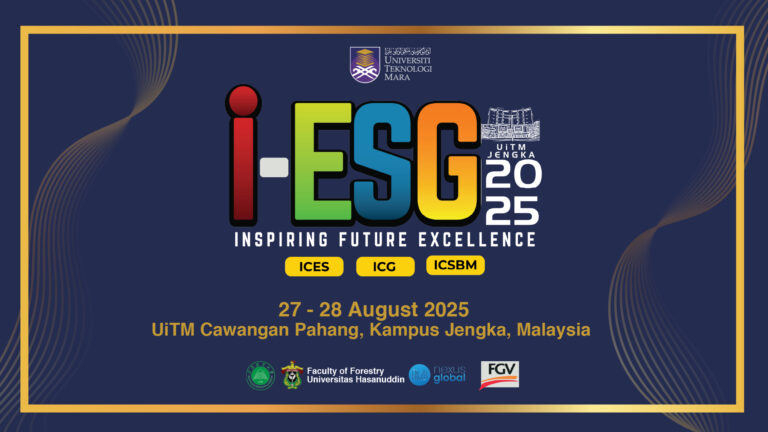 We are pleased to extend an invitation to you to participate in our upcoming event, the International Environment, Social and Governance Conference (i-ESG), which will be held from 27 & 28 August 2025 at UiTM Pahang Branch, Pahang, Malaysia. The three-day event will be conducted in a hybrid mode of presentation which comprises both in-person and virtual sessions. This will be a great platform for all researchers throughout the world to share their knowledge and expertise related to the ESG theme.