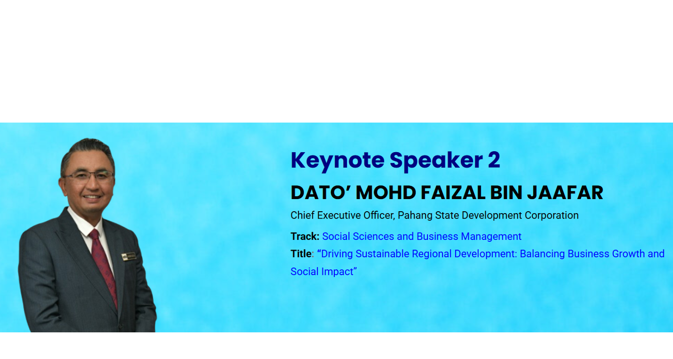 Holistically, nowadays, sustainability encompasses beyond environmental issues. Environmental, social and governance (ESG) factors are increasingly becoming the mainstay to be considered in making a decision at all levels of the economy. The focus placed on incorporating ESG criteria into various levels is in line with the objectives of the 12th Malaysia Plan in an effort to reinvigorate the country’s socioeconomic development besides ensuring long-term sustainability and prosperity. Under the theme of ‘Inspiring Future Excellence’ it is hoped that this event will be able to achieve the objectives of this conference.
